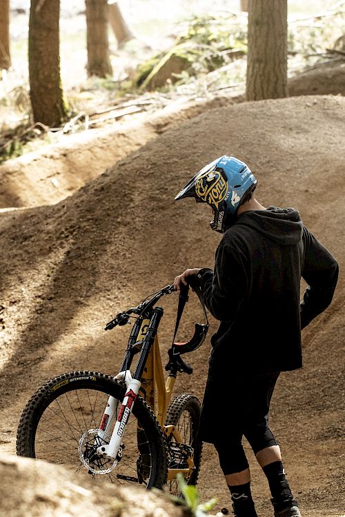 Vincent is geen gewone mountainbiker - hij is een kunstenaar op twee wielen. Zijn lijnen zijn wild, creatief en vaak daar waar geen pad is. Met zijn kalme houding naast de motor en zijn compromisloze stijl op het parcours belichaamt hij zijn soort van Vertrouw op je waanzin.